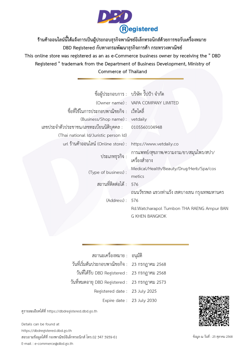 เนื่องจากสินค้าบางชนิดเป็นยาควบคุมพิเศษ ที่จำหน่ายให้ได้เฉพาะสถานพยาบาลสัตว์เท่านั้นตามข้อกำหนด อย. ทาง Vetdaily จึงใคร่ขอความกรุณาคุณหมอแนบเอกสาร สส.3 และ สส.4 ประกอบการสมัครสมาชิก โดยข้อมูลการสมัครทั้งหมดจะถูกเก็บเป็นความลับ และไม่มีการเผยแพร่ออกนอกองค์กรอย่างเด็ดขาด